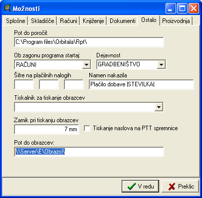 - Pot do obrazcev: vpiše se mrežna pot do osnovne mape obrazcev. Glej sliko.